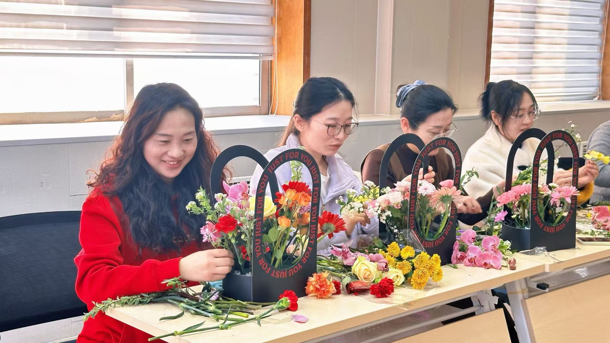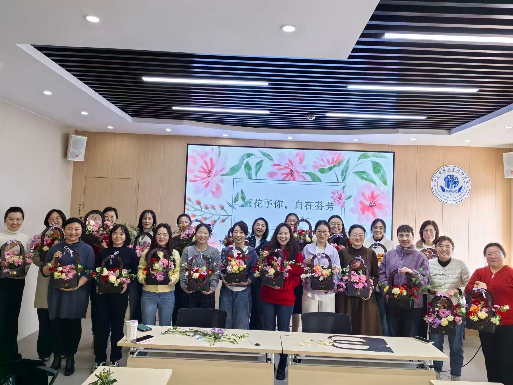 春风送暖,芳华绽放。为丰富女性同胞精神文化生活,传递温暖与关怀,保险学院工会精心举办“繁花予你,自在芬芳”妇女节插花活动,大家以花为媒、以艺怡情,在花香与笑语中共度温馨美好的节日时光。