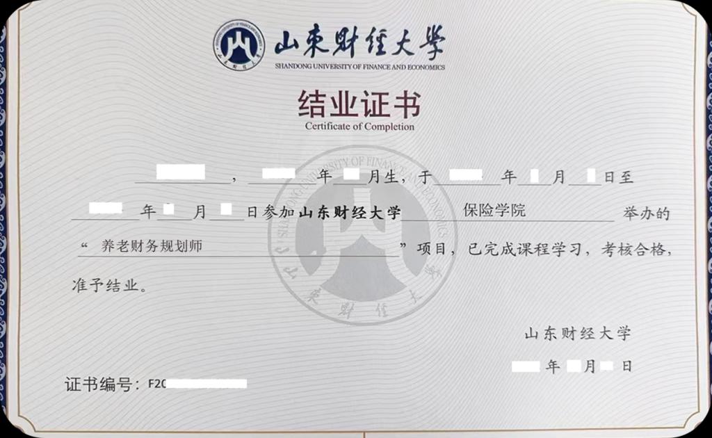 通过考核者,将颁发山东财经大学保险学院养老财务规划师研修班结业证书及FPP 养老财务规划师资格认证,证书可作为专业能力证明,助力职业竞争力提升。
