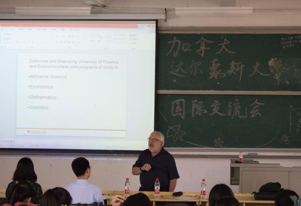 交流会上,柏瑞为同学们介绍了达尔豪斯大学与我校在精算专业上的相关合作项目。同时,他为同学们展示了与其他学院的合作项目成果。他希望我校保险学院的同学可以积极参与到此合作项目中,也表达了对同学们的期望与欢迎。