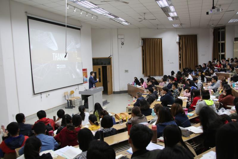 最后,田明泉和同学们进行了充分的互动交流,就同学们提出的对于保险中介行业的营销模式、职业规划及个人未来发展等问题阐述了他的观点。