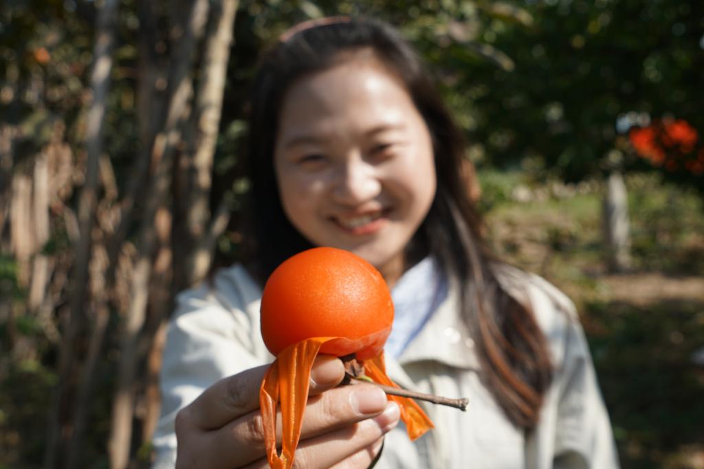 早上8:30出发,欣赏着沿途风光、田野秋色,老师们来到活动的第一站--济阳垛石镇。千亩柿子园里火红的柿子挂满枝头,大家有的拎起小篮子,有的拿起采果器,有的爬上了梯子,共同合作,你采我摘,好不热闹。透着喜庆和吉祥的果实,像一只只红灯笼照亮了老师们的笑脸,摘下熟透的柿子吸在嘴里,鲜鲜的、嫩嫩的、软软的、甜甜的,味道浓郁自然。