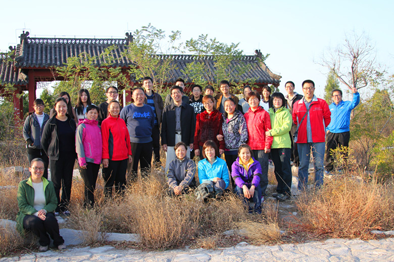 深秋时节,抬头放眼,苍翠的松柏,火红的枫树,金色的黄栌竞相争艳,情趣盎然,交相辉映,形成了金鸡岭别样的风光。拾级而上,一路清幽宁静,风景宜人,老师们兴致勃勃,精神焕发,互相间谈笑风生,进行着别样的户外交流。