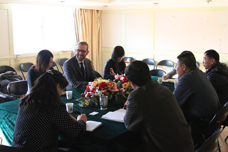 保险学院院长闫庆悦简要介绍了保险学院的师资队伍、在校学生、学科发展、科研、校企合作等方面的状况。托马斯先生介绍了德国安顾保险集团的概况及其此行的目的和期望。此行的目的在于加强与山东高校的合作,希望在学术研究、学术活动、学生资助等方面展开深入的、高质量的实质性合作。