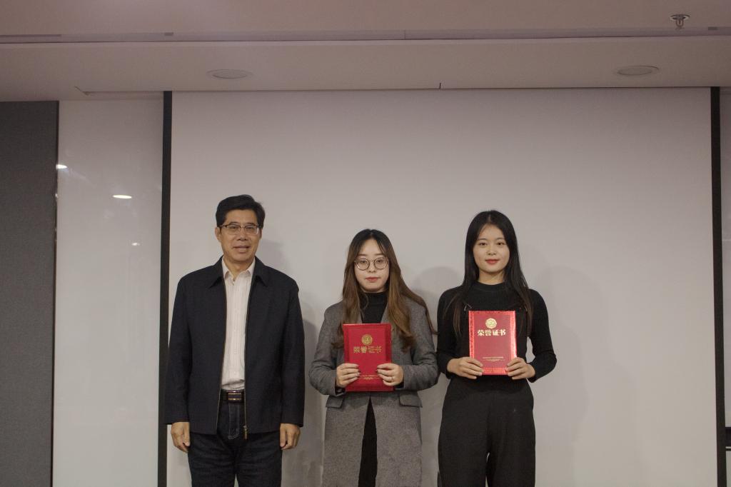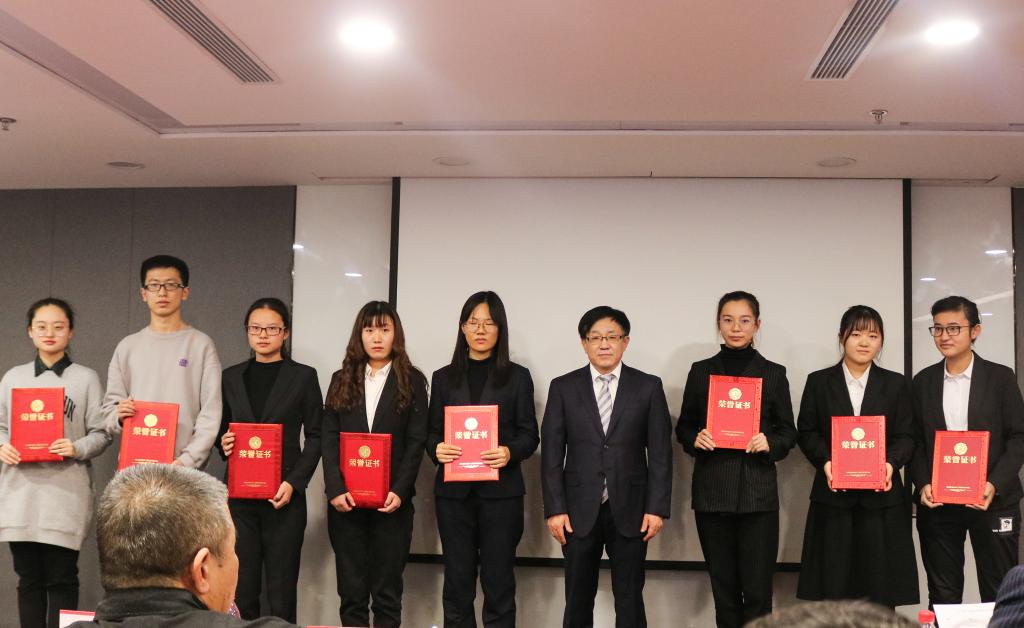 精彩的致辞后,王倩倩宣读了获奖学生名单,公司领导、学院领导作为颁奖嘉宾为获奖学生颁奖。