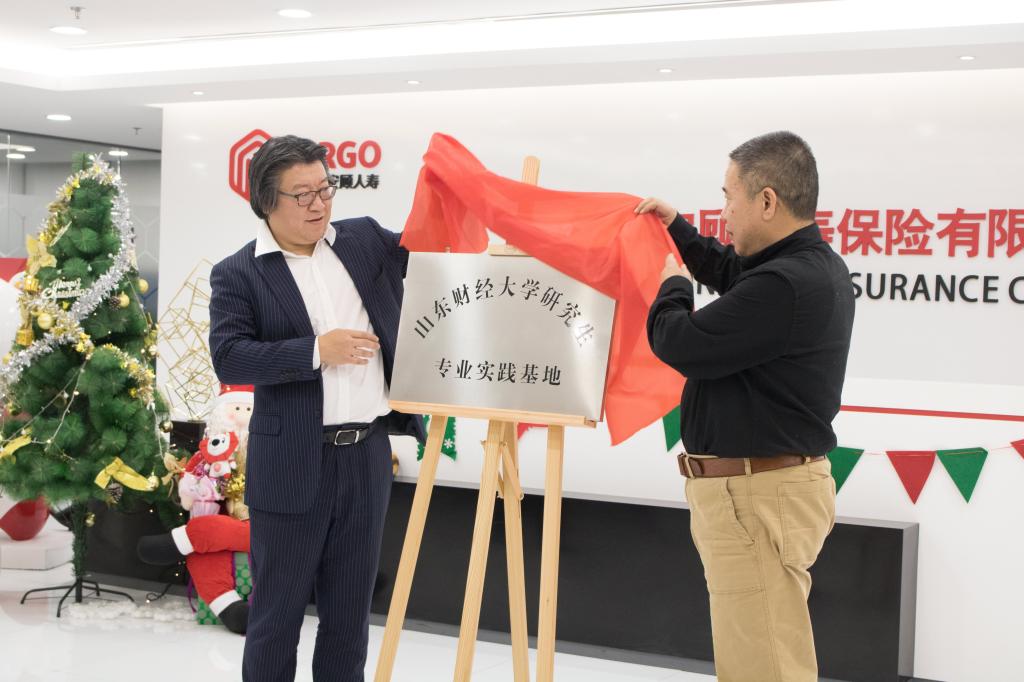 2019年12月20日,山东财经大学第三届“德华安顾人寿精算奖学金”颁奖典礼暨“山东财经大学研究生专业实践基地”揭牌仪式在德华安顾人寿保险有限公司总部隆重举行。德华安顾人寿董事、总经理殷晓松,德华安顾人寿总经理助理、总精算师钱建军,德华安顾人寿总经理助理肖萍,德华安顾人寿人力资源部负责人李滨,德华安顾人寿产品市场部负责人马法勤,德华安顾人寿精算部负责人焦宪福,德华安顾人寿企业传讯部负责人陈肖飞,山东财经大学保险学院院长闫庆悦,党委书记朱传武,副院长刘素春,辅导员王倩倩、李智、陈萌,保险学院学生代表及获奖同学出席典礼,颁奖典礼由保险学院学工办负责人王倩倩主持。
