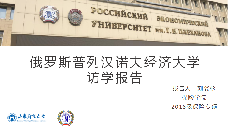 为促进学校国际化办学进程,拓宽学生视野,培养具有国际视野的人才,山东财经大学设立了优秀研究生国(境)外研修交流项目,资助多批优秀研究生出国访学交流。作为该项目资助的一员,我院2018级硕士研究生刘姿杉同学于2019年9月10日至2020年1月16日,赴俄罗斯普列汉诺夫经济大学进行访学。6月3日,通过腾讯会议平台,学院召开了研究生海外访学项目经验分享会。在孙磊老师的主持下,刘姿杉同学就赴俄罗斯普列汉诺夫经济大学访学情况,向2019级研究生做了分享和交流。