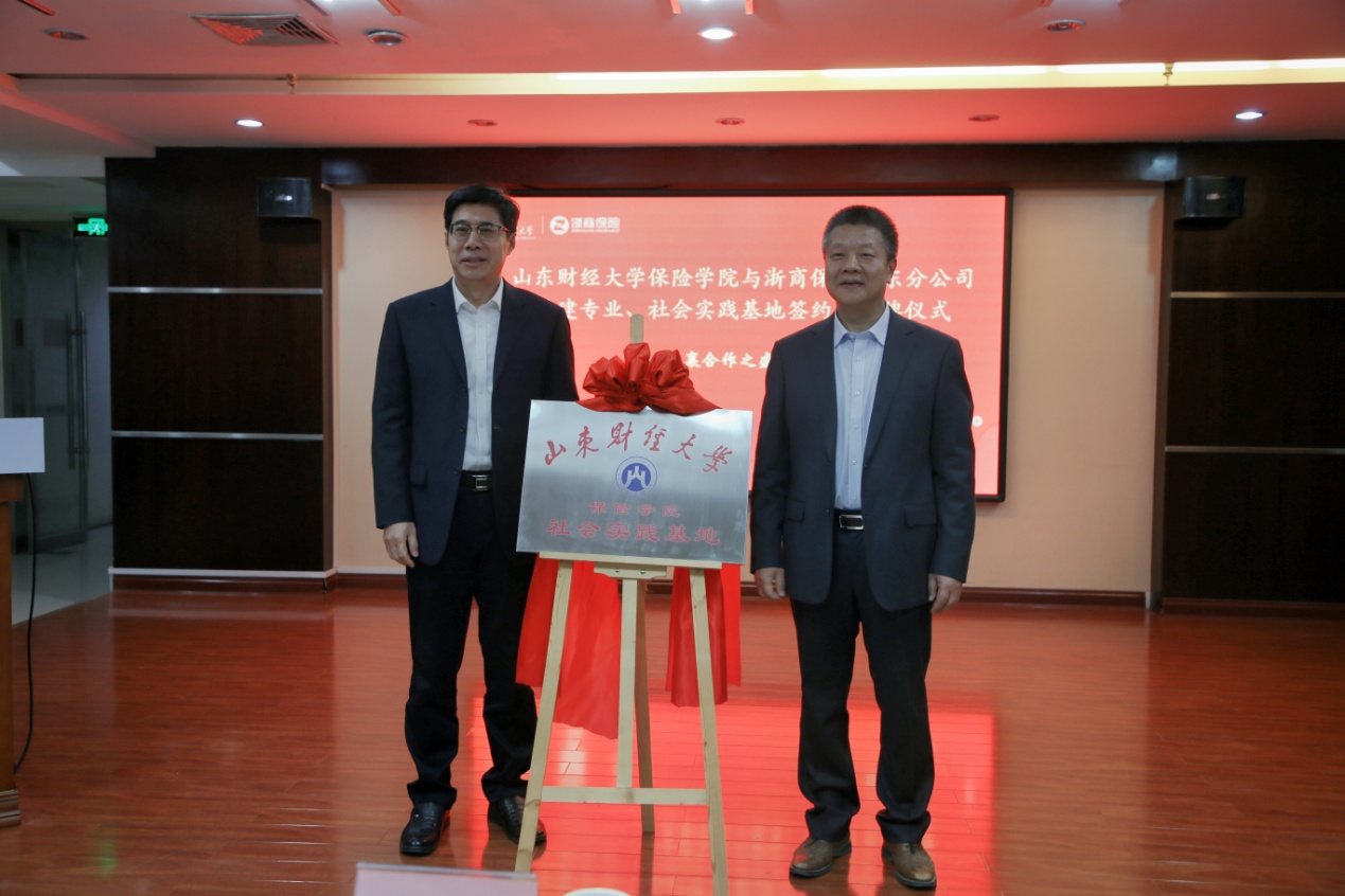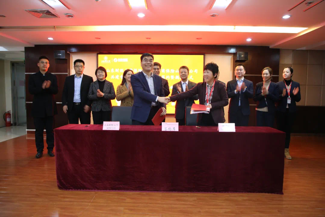 12月25日下午,山东财经大学保险学院与浙商财产保险股份有限公司山东分公司共建专业、社会实践基地签约暨揭牌仪式在浙商保险山东分公司举行。校企双方高度重视本次活动,山东财经大学保险学院党委书记朱传武、院长葛永波一行,浙商保险党委委员山东分公司党委书记胡小军、山东分公司总经理鲁秀芬、副总经理王志刚等公司代表出席签约仪式。仪式由山东分公司总经理助理周维成主持。