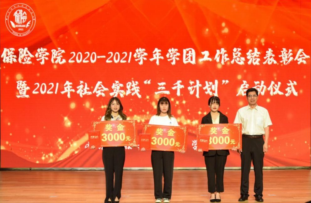 敦品励学,涵养优良学风;明辨笃行,领航青春梦想。5月20日下午两点,保险学院2020-2021学年学团工作总结表彰会暨2021年社会实践“三千计划”启动仪式在圣井校区大学生活动中心报告厅隆重召开,保险学院党委书记朱传武、院长葛永波、党委副书记张娟、学院学工办、学院团委全体老师以及获奖学生代表、圣井校区学生代表300余人出席此次会议。