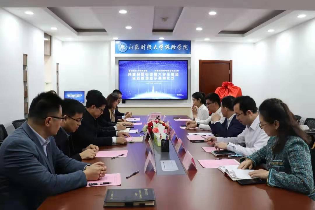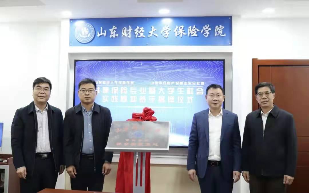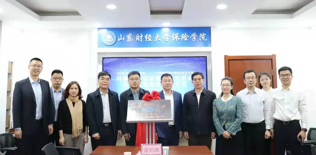 2021年12月9日上午,山东财经大学保险学院与中国平安财产保险股份有限公司山东分公司共建保险专业暨大学生社会实践基地签约揭牌仪式在山东财经大学保险学院会议室举行。中国平安财产保险山东分公司副总经理王国全、农村保险业务部经理赵江、金融行业业务部总监赵磊、人事行政部经理高玲及招聘经理周琦和山东财经大学团委副书记谷学峰、保险学院党委书记朱传武、院长葛永波、党委副书记张娟、副院长于文广、就业办主任团委实践委员陈萌等参加签约揭牌仪式,仪式由张娟副书记主持。