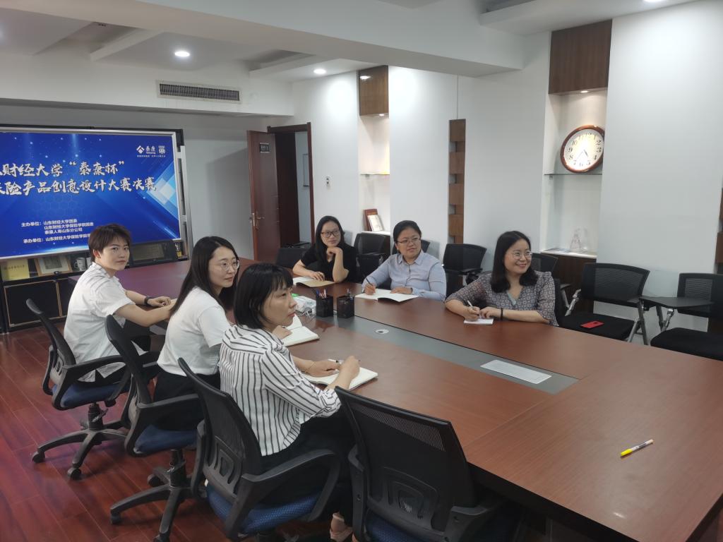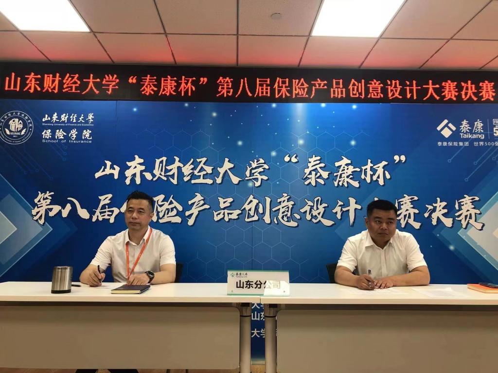 6月13日下午,由泰康人寿保险有限责任公司山东分公司、山东财经大学团委、保险学院联合举办,保险学院学生会承办的山东财经大学“泰康杯”第八届保险产品创意设计大赛在圣井校区举行。大赛评委由泰康人寿山东分公司人力资源部经理许国松、泰康人寿山东分公司组发培训部经理周广凯、保险学院保险学系教授杨文生、副教授李轶男,精算系副教授杜立金、副教授王霞,保险投资系副教授马玉秀、讲师陈虹宇担任。决赛采用线上线下相结合的形式进行。