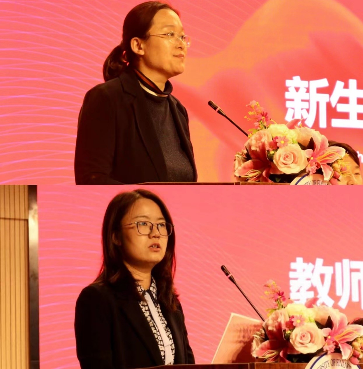 教师代表范红丽结合自身教学经验及个人经历寄语新同学,希望同学们以青春特有的蓬勃朝气迎接崭新的大学生活,在大学四年的求学时光里勇于奋斗,奋力书写新时代的精彩华章。