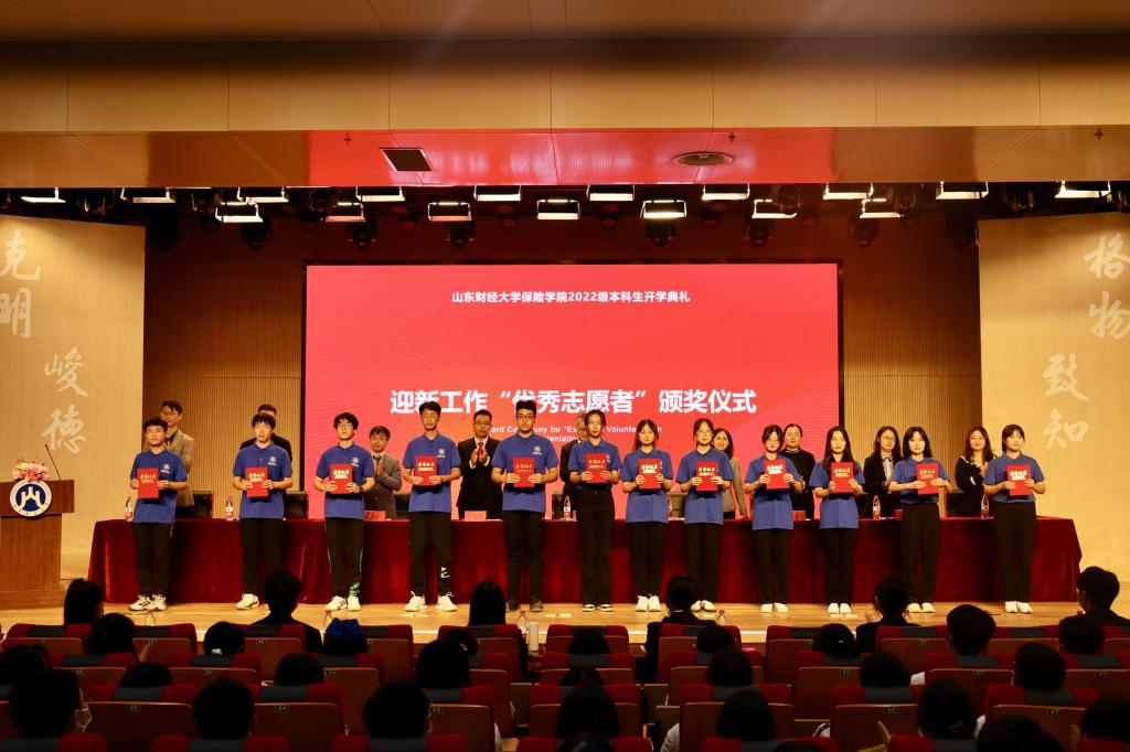 校歌《梦想花开》的悠扬旋律和学院迎新视频为典礼开启了温馨精彩的暖场氛围。19时,2022级新生开学典礼在庄严的国歌声中拉开序幕,陶晓华宣读了迎新工作优秀志愿者名单,与会嘉宾、学院领导为12名受表彰的志愿者颁发荣誉证书。