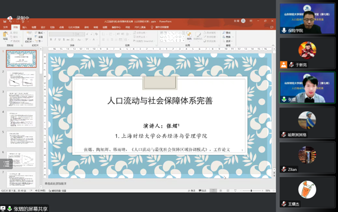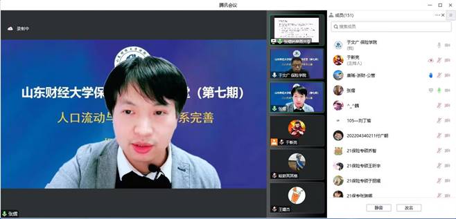12月5日下午14:00,山东财经大学保险学院第七期名家讲堂成功举办。本期名家讲堂特邀上海财经大学公共经济与管理学院张熠教授做主题为“人口流动与社会保障体系完善”的报告。讲座由山东财经大学保险学院院长于文广教授主持,学院老师、本科生和硕博研究生,以及校外人员等近210人线上参与。
