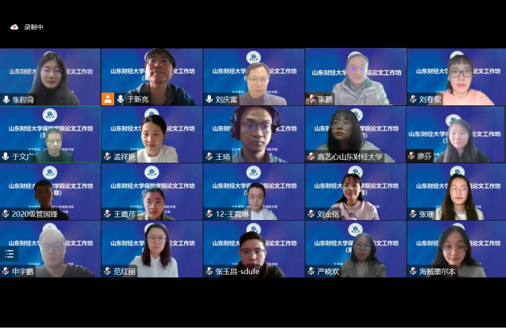 12月16日下午14:00,山东财经大学保险学院第一期论文工作坊成功举办。经过前期精心筹备和广泛动员,本期论文工作坊在院内征集工作论文共计20篇,涉及保险、精算和医养健康保障等经济管理领域的众多热点话题。学院有幸邀请到来自复旦大学的刘庆富院长和来自西南财经大学的张鹏副研究员两位具有丰富论文评审经验的评审专家对论文进行线下评阅和线上点评。本期论文工作坊由保险学院副院长于新亮教授主持。