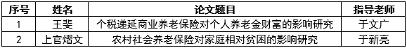 我院导师指导的2篇学位论文获评2022年山东省优秀硕士学位论文,分别是:于文广教授指导的由王斐撰写的硕士论文《个税递延商业养老保险对个人养老金财富的影响研究》;于新亮教授指导的由上官熠文撰写的硕士论文《农村社会养老保险对家庭相对贫困的影响研究》。