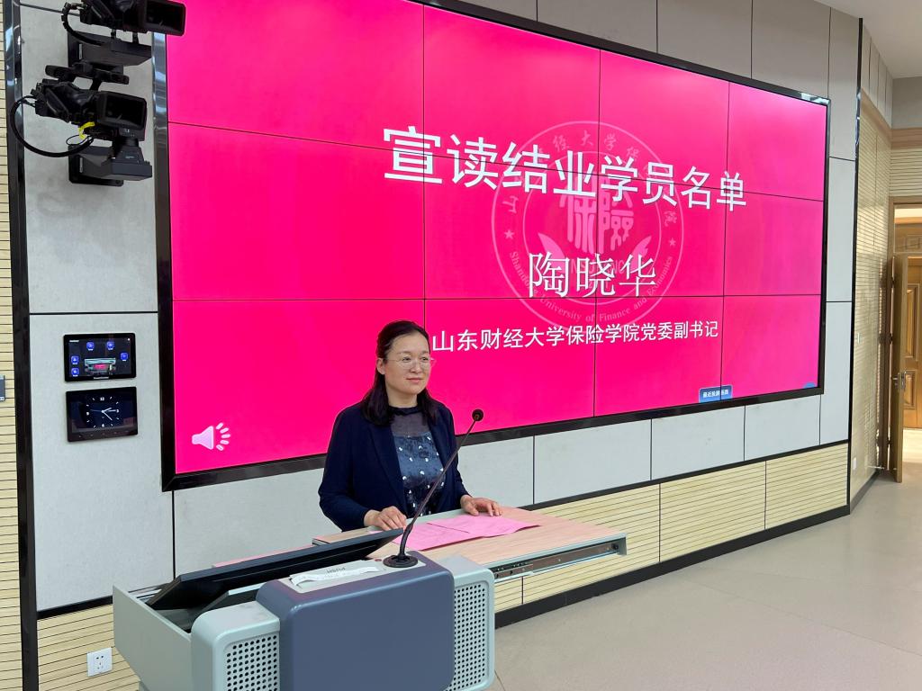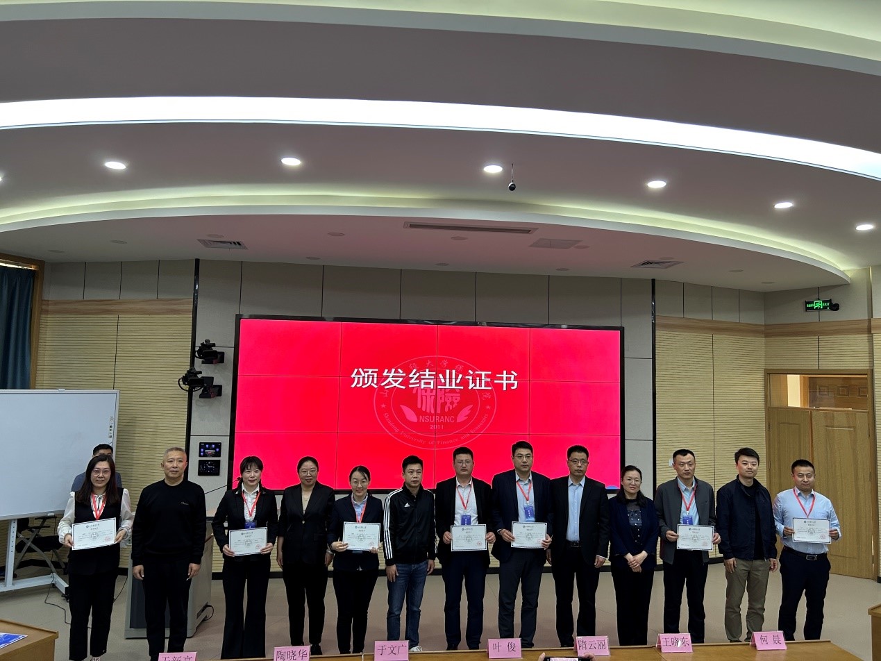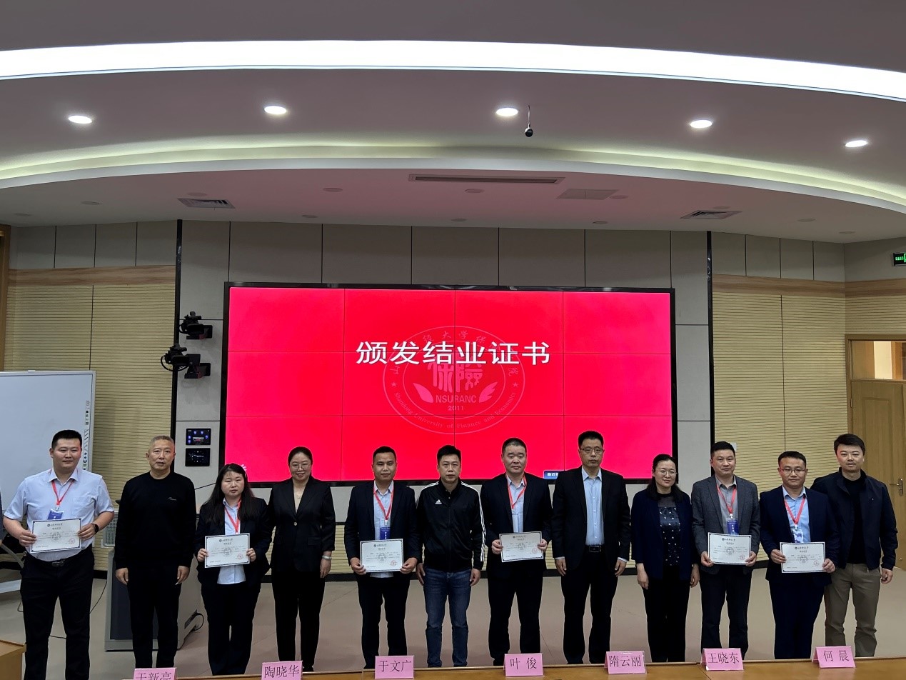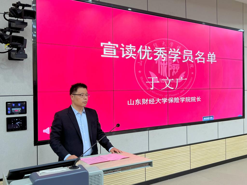 紧接着,山东财经大学保险学院院长于文广宣读优秀学员名单,并由双方领导向优秀学员颁发荣誉证书。