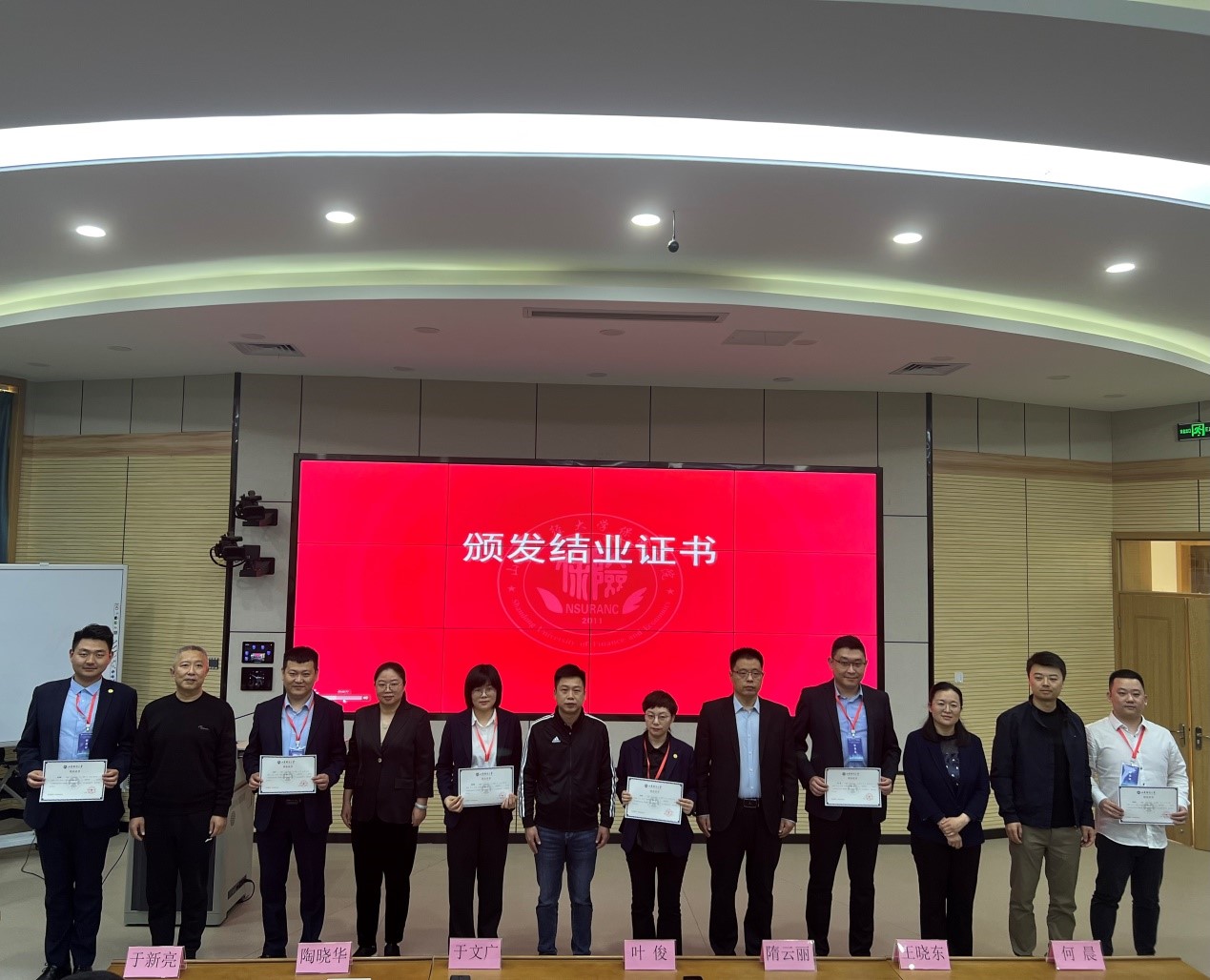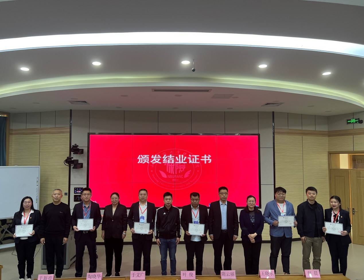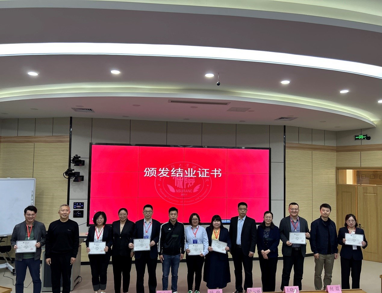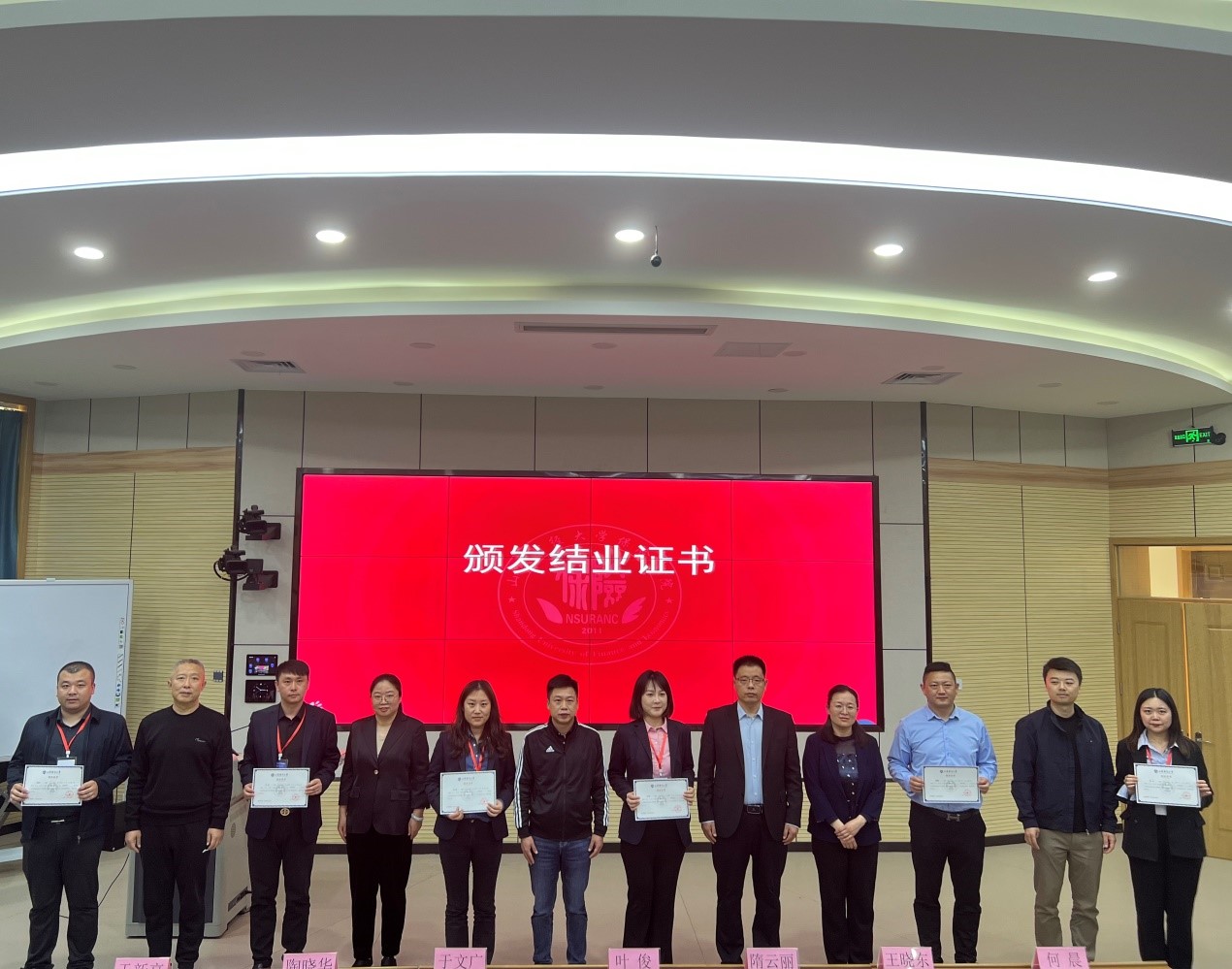 紧接着,山东财经大学保险学院院长于文广宣读优秀学员名单,并由双方领导向优秀学员颁发荣誉证书。