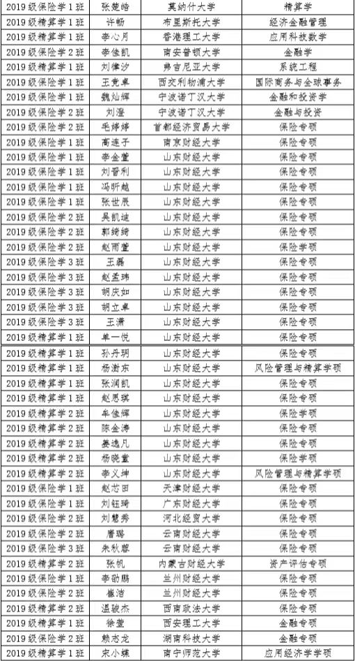 附保险学院2019级本科生考研一览表: