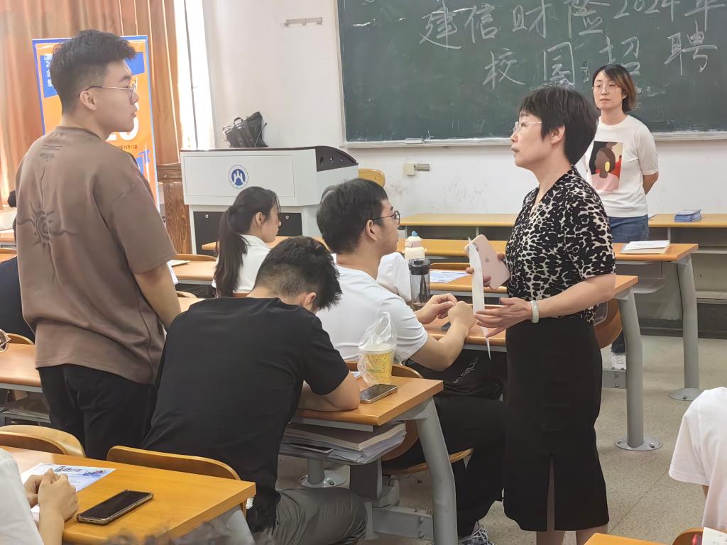 建信财险分业务部门负责人首先向同学们简要介绍了建信财产保险有限责任公司的概况及招聘机构、招聘职位、招聘对象及相关要求。建信财险公司隶属于中国建设银行集团,经营总部位于北京,下设6家分公司,总公司与分公司对应聘人员在学历、专业、岗位等方面的要求均存在区别。通过这一部分的讲解,同学们对公司情况有了初步了解,并明确了招聘的基本信息。