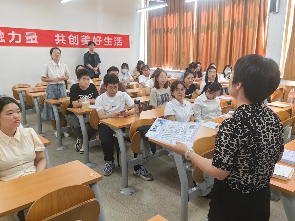 随后,刘娜深入介绍了银行保险公司的特点以及建信财险和建信人寿的区别。她详细解释了公司的经营范围,强调了在该领域就业的潜力和机会,引发了同学们的浓厚兴趣,拓宽了同学们未来职业选择的思路和认识。