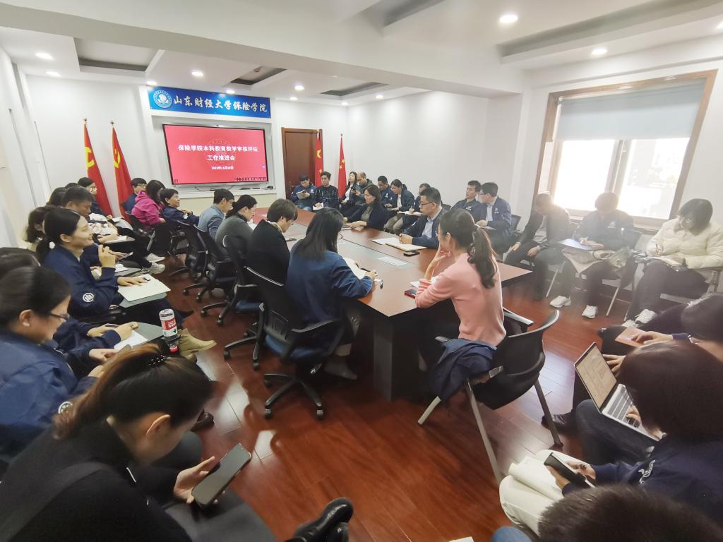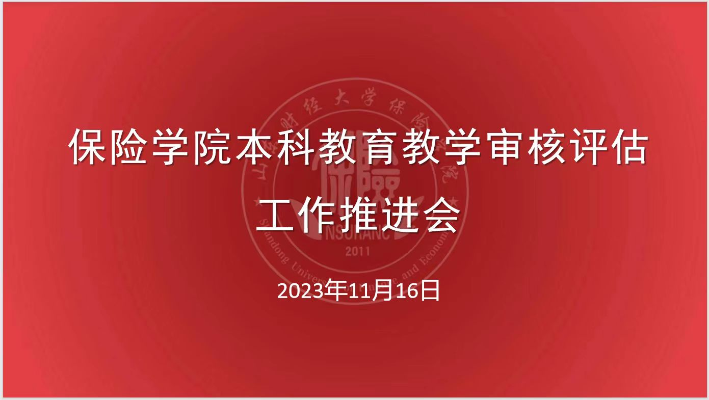 为保证本科教育教学审核评估工作有序推进,11月16日下午,保险学院在舜耕校区办公楼1108会议室召开本科教育教学审核评估工作推进会。会议由学院党委书记张娟主持,保险学院全体教职工参会。