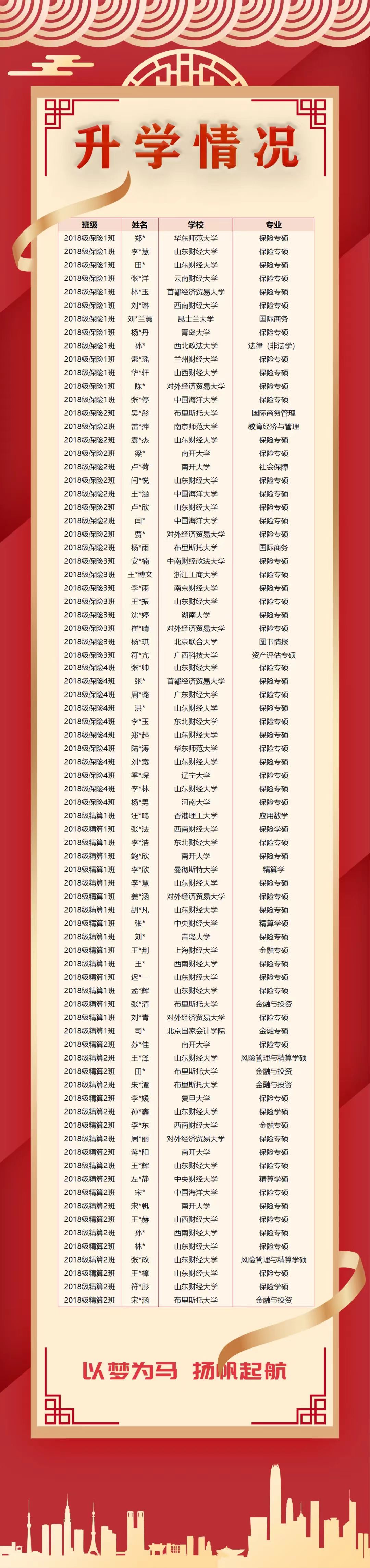 捷报频传,再创新高!在经济学类国家线与考研人数创新高的竞争环境下,山东财经大学保险学院2018级本科毕业生锐意进取、顽强拼搏,境内外研究生拟录取升学率达29%,保险学院本科生升学再创新高!