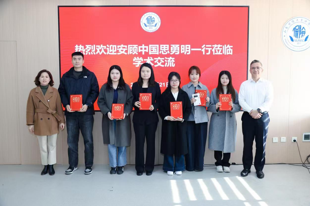 思勇明教授被聘为山东财经大学客座教授以来,坚持每年到保险学院为研究生讲课,至2024年已持续8年。思勇明教授每次讲课内容均围绕保险行业的前沿热点问题,学生受益颇多。长期的学术交流使保险学院与德国安顾集团北京总代表处、济南代表处的合作进一步加深。