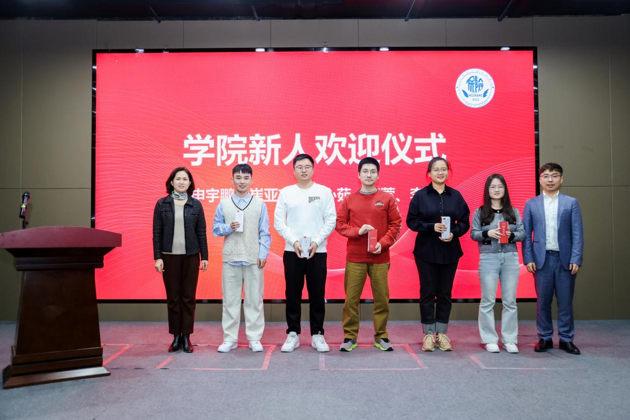 会议举行新进教师欢迎仪式,2024年加入保险学院的5位青年教师依次上台,学院领导为他们送上新人纪念礼。新老师一一发言,表达了为人师表,爱岗敬业,勇挑重担,为学院发展贡献力量的心声。