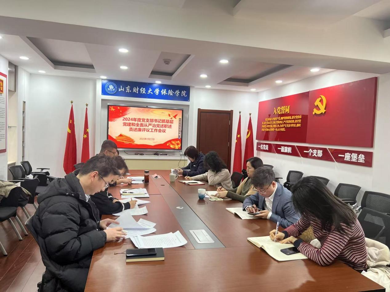 1月17日下午,保险学院党委在舜耕校区办公楼1108会议室召开2024年度党支部书记抓基层党建工作述职评议会。会议由党委书记张娟主持,学院领导班子成员及全体党支部书记参加此次会议。