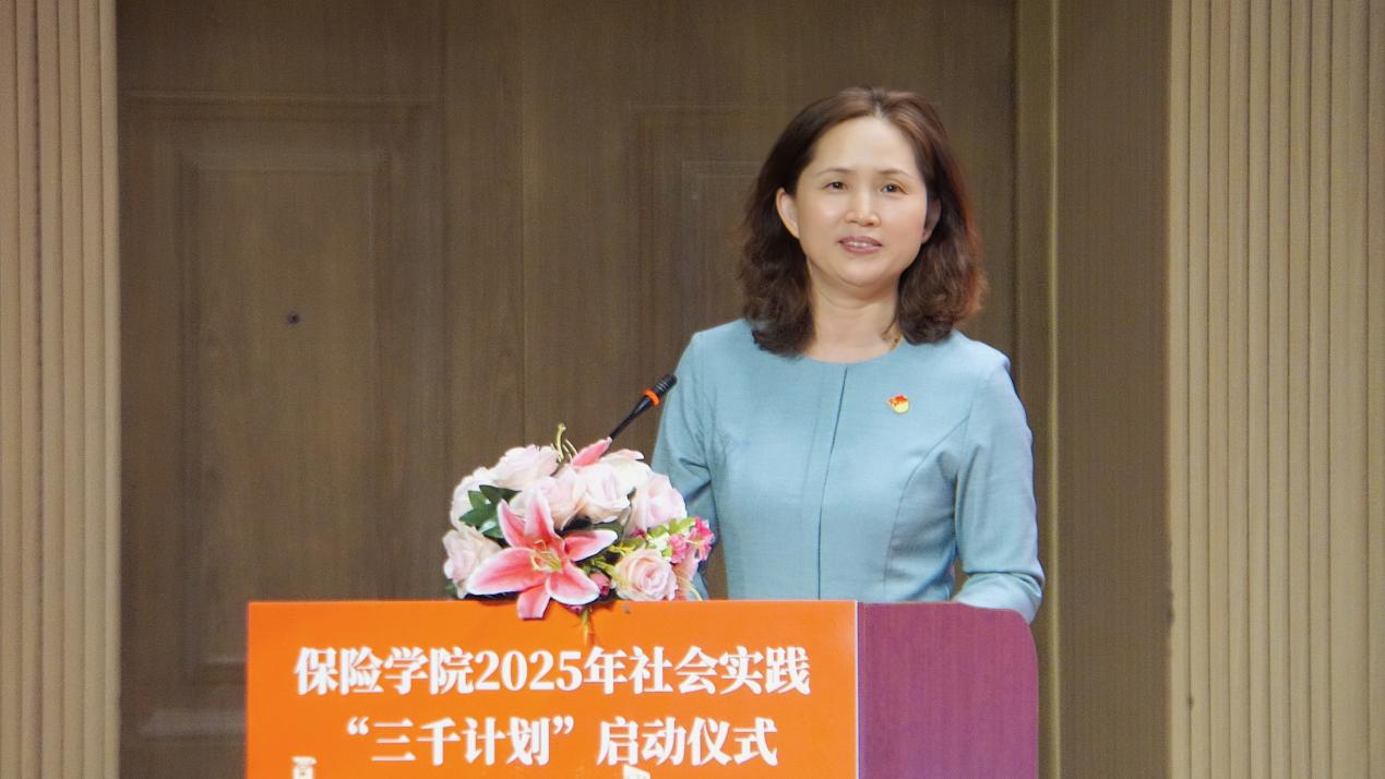 6月17日下午,保险学院2025年社会实践“三千计划”启动仪式在章丘校区文化活动中心报告厅顺利召开。仪式以“立强国建设鸿鹄志 做实践报国奋斗者”为主题,学院党委书记张娟、院长于新亮、副院长范红丽、院长助理张鹏成、2025年实践团队成员及师生代表参加活动。仪式由学院党委副书记王斐斐主持。