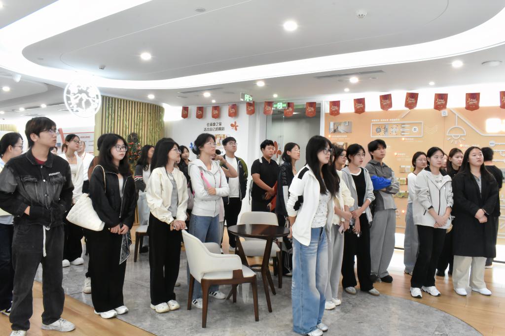 师生一行首先参观了公司的健康财富体验中心、核心业务区与员工办公区,实地了解企业发展历程、业务布局与企业文化,增强了对保险行业职场生态的直观认识。