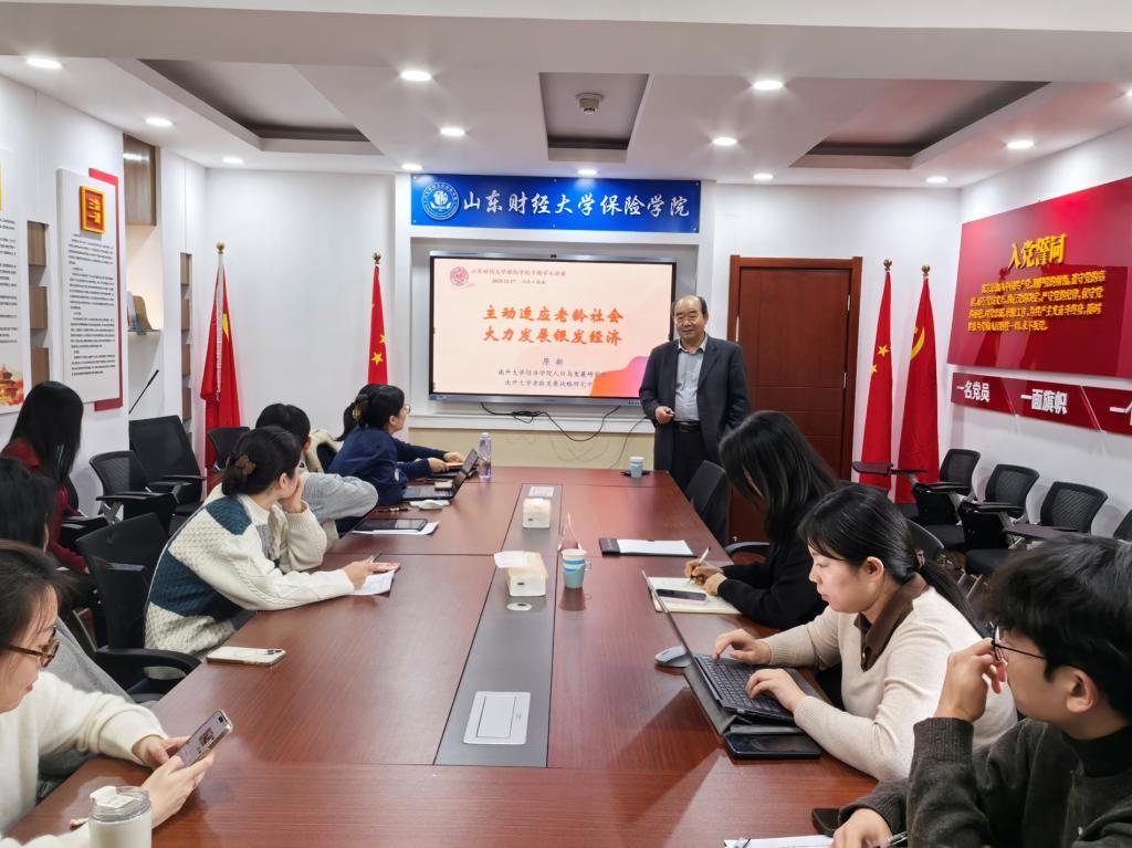 2025年12月17日下午,山东财经大学保险学院“德华安顾人寿”名家讲堂第三十期在舜耕校区办公楼1108会议室举行。南开大学经济学院教授、老龄发展战略研究中心主任原新教授应邀担任主讲嘉宾。讲座由保险学院副院长范红丽教授主持,学院教师及研究生、本科生代表三十余人参加。