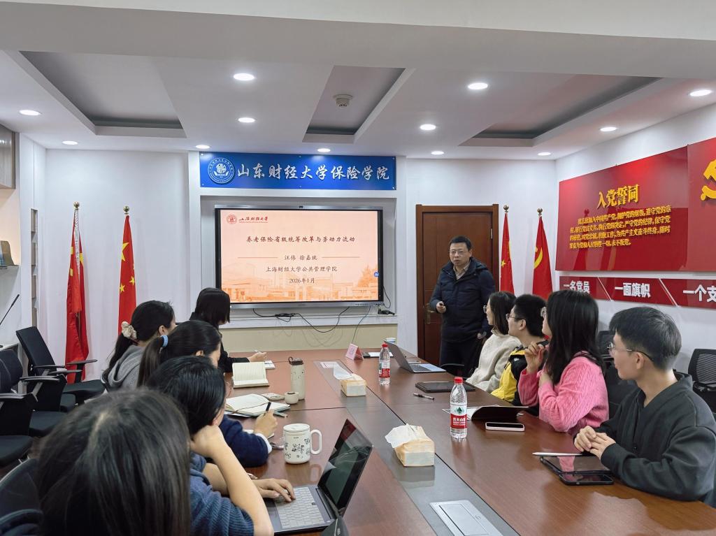 2026年1月13日上午,山东财经大学保险学院“德华安顾人寿”名家讲堂第三十一期在舜耕校区办公楼1108会议室顺利举办。本期讲堂特邀上海财经大学讲席教授、博士生导师汪伟担任主讲嘉宾。讲座由保险学院副院长范红丽教授主持,学院教师及各层次学生代表三十余人参与。