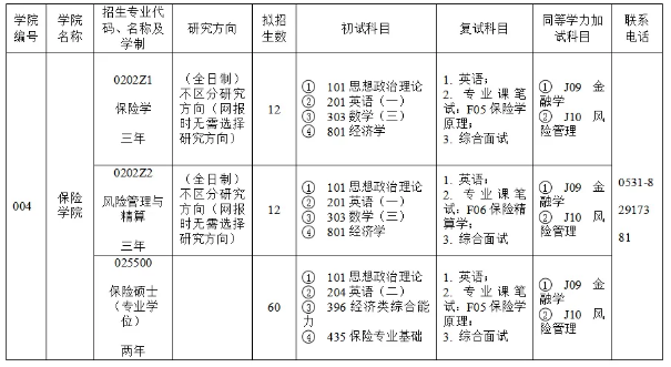 保险学院积极推动研究生学位点建设工作,招收保险学、风险管理与精算学术型硕士以及保险专业硕士,是应用经济学博士点覆盖学科,现有在校研究生159人。学院师资力量雄厚,专任教师中:教授9人,副教授8人,具有博士学位的专任教师34人,94%的专任教师毕业于985高校。目前,我院有二级教授1人,三级教授1人,博士生导师4人,硕士生导师21人,山东省“泰山学者青年专家”3人,山东省教学名师1人,山东省优秀研究生指导教师4人,山东省本科教育教学指导委员会委员1人。学院积极推进研究生培养模式改革,实施研究生教育创新计划,强化研究生课程体系建设,注重提高研究生的学术水平,博士考取率达10%。具体招生信息如下:
