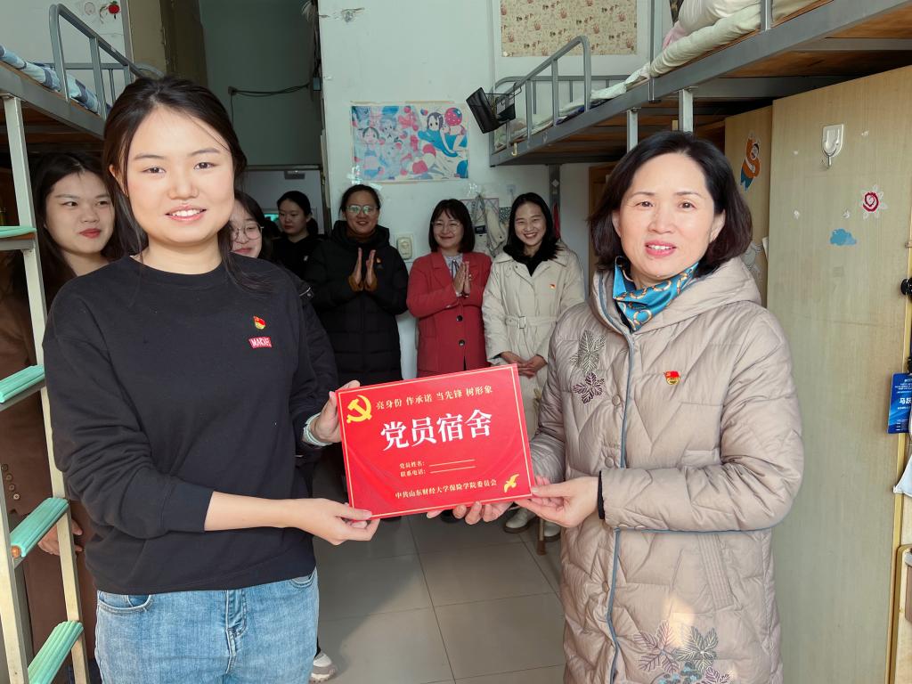 学院党委高度重视安全工作,教育活动期间,深入学生宿舍,为党员、入党积极分子宿舍挂牌。12月11日,学院党委书记张娟前往学院舜耕校区学生宿舍进行安全卫生检查,并为党员宿舍挂牌,鼓励学生党员发挥先锋模范作用,带动全体同学共同维护宿舍安全与卫生。