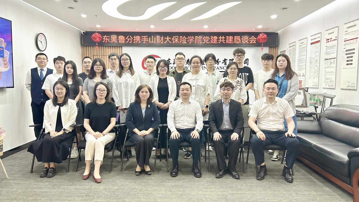 为充分发挥党建引领作用,推动产教融合向更高质量、更深层次发展,提高人才培养质量,拓宽学生就业渠道,5月13日,山东财经大学保险学院赴东吴人寿山东分公司举办党建共建恳谈会暨访企拓岗活动。东吴人寿山东分公司党支部书记、总经理朱明,山东财经大学保险学院党委书记张娟、院长于新亮及双方党员、师生代表共计30余人参会。