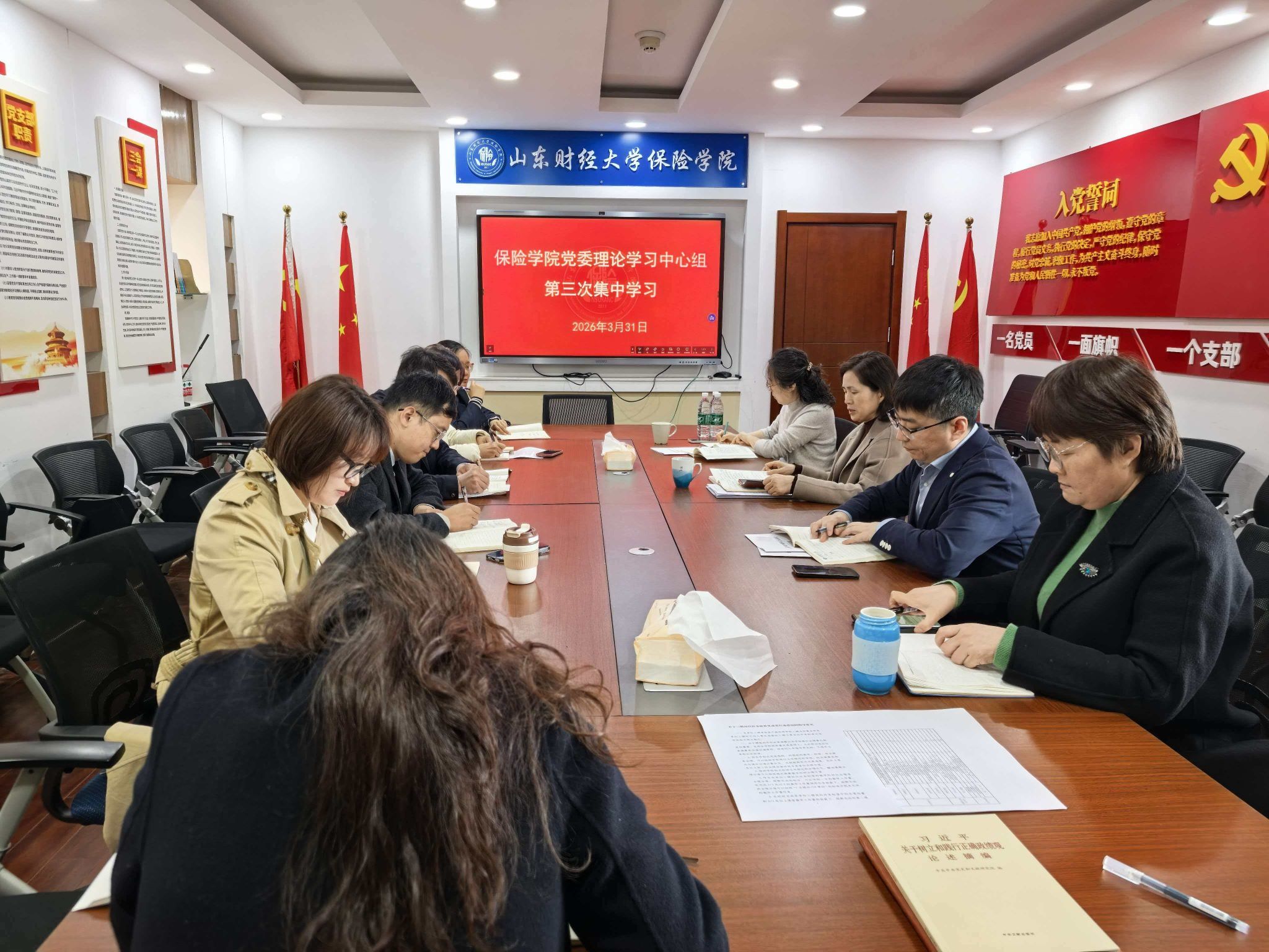 保险学院党委召开2026年党委理论学习中心组第三次学习(扩大)会议,深入学习领会习近平总书记关于树立和践行正确政绩观的有关论述。学院党委理论学习中心组成员、各党支部书记参加学习,会议由学院党委书记张娟主持。